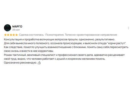 Телесно-ориентированная психотерапия — это направление психотерапии, работающее с проблемами и неврозами пациента через процедуры телесного контакта или другими словами, через мануальное мышечное тестирование. Причина возникновения зажимов (спазмов) – пережитые психотравмы и внутренний запрет на проявление эмоций. Сдержанные, невыраженные эмоции «запоминаются» телом и «запираются» в нем в виде мышечных напряжений, которые постепенно накапливаются и усиливаются. С помощью мануального мышечного тестирования мы быстро и эффективно получим всю необходимую информацию (запросив у подсознания через тело) – выявив, с чем нужно работать и что именно нужно сделать. Такой метод позволяет значительно сократить время работы с острыми состояниями, негативными эмоциями, зависимостями и страхами.
