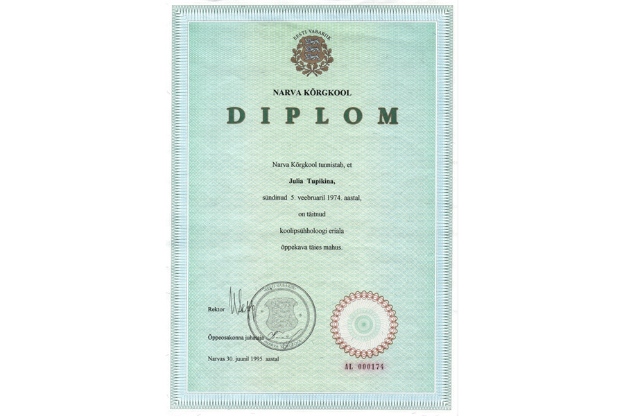 - Практический психолог – бакалавр (Нарвская Высшая школа)
