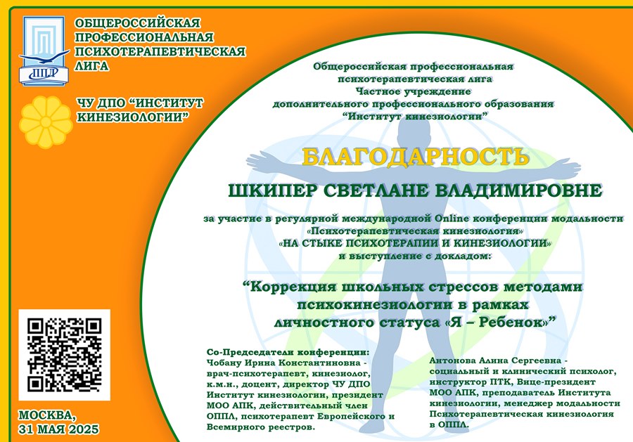 Конференция модальности «Психотерапевтическая кинезиология» Общероссийской профессиональной психотерапевтической лиги