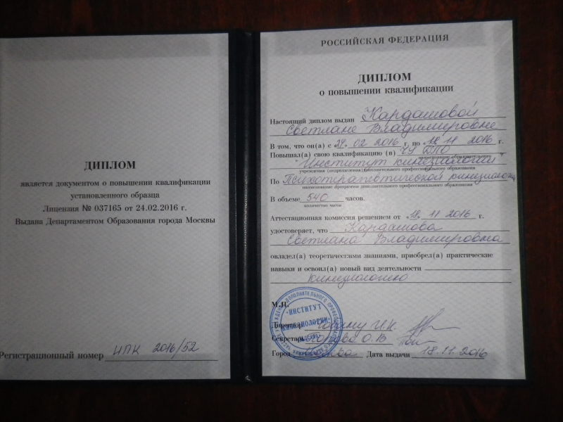 Диплом о переподготовке по ПТК