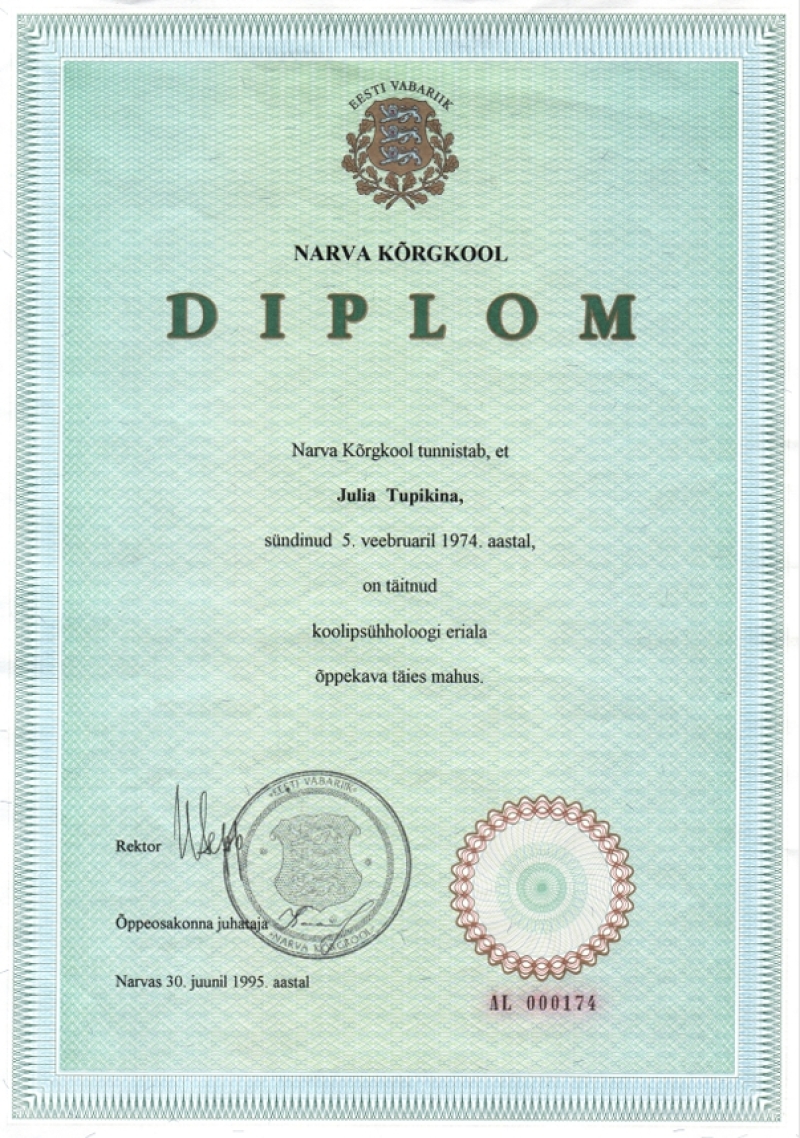 - Практический психолог – бакалавр (Нарвская Высшая школа)