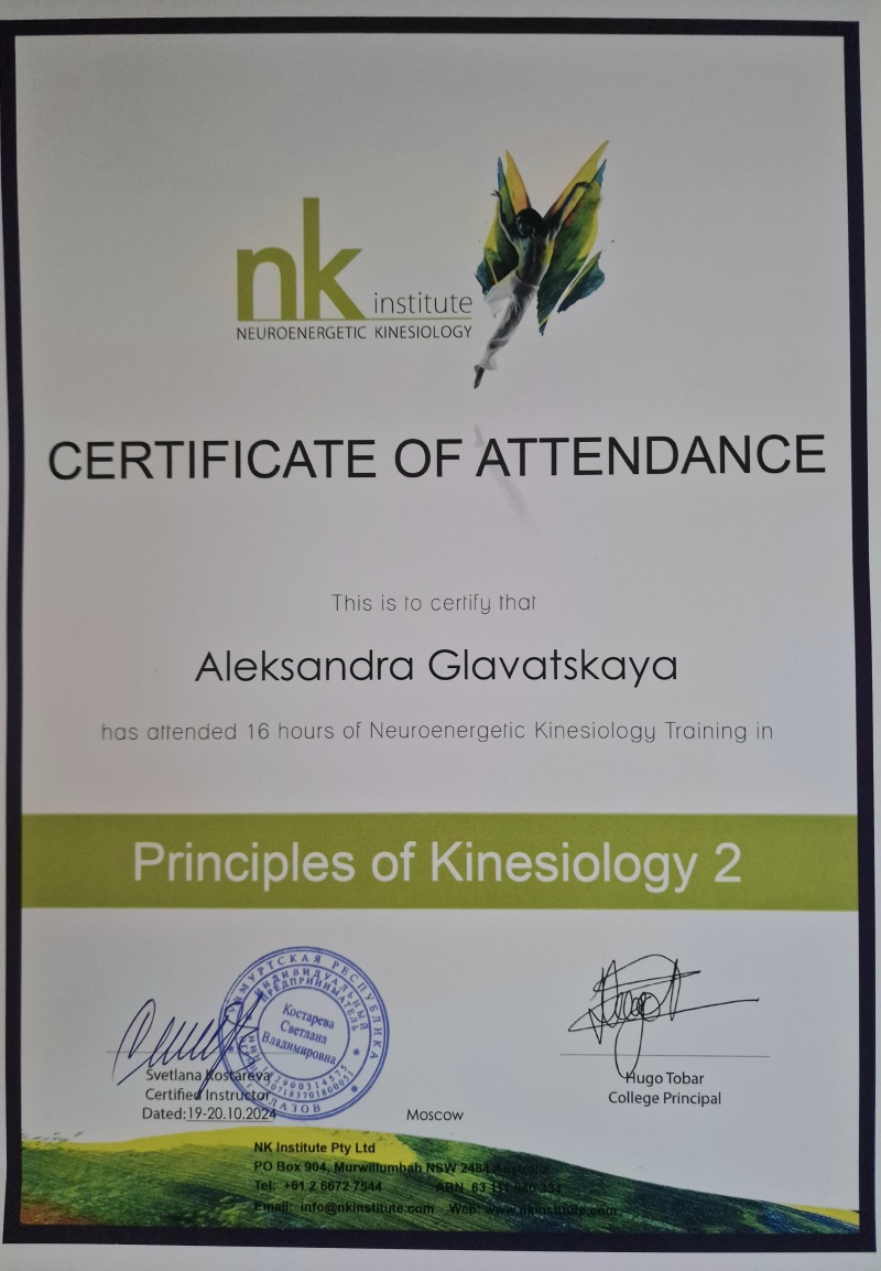 Меня зовут Александра и я психотерапевтический кинезиолог, клинический психолог, висцеральный терапевт.